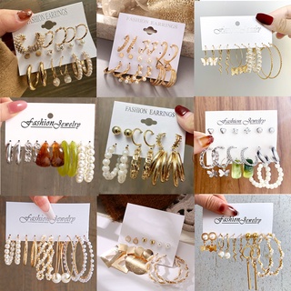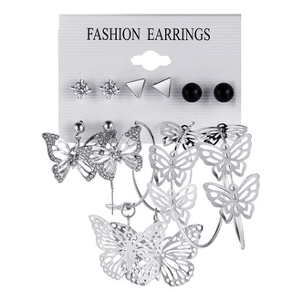 6pcs/set Vintage Liontin Kupu-Kupu Anting Mutiara Buatan Untuk Perempuan Geometri Cinta Hati Telinga Cincin Aksesoris Pesta