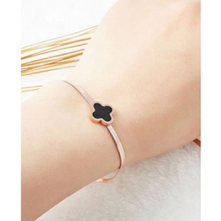 Fourfashion Gelang Wanita Titanium Gepeng Empat Daun Semangi Anti Karat Dan Luntur