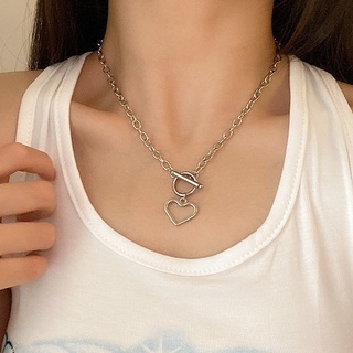 Kalung Choker Rantai Bahan Logam Tebal Warna Emas Perak Bentuk Hati Geometris Gaya Punk Vintage Gothic