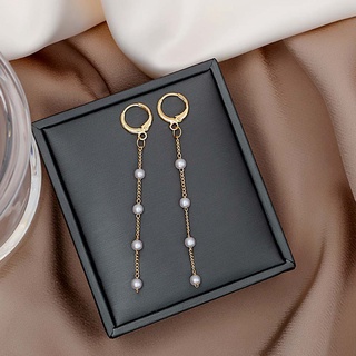 Anting Rantai Panjang Rumbai Lapis Emas Aksen Mutiara Untuk Wanita