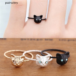 Prt 1Pc Cincin Bentuk Kucing Mini Aksen Berlian Imitasi Warna Hitamgoldsilver Untuk Wanita PRT