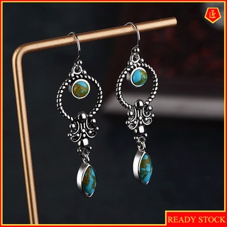 [Ready Stock]Women's Retro Silver Inlaid Turquoise Eardrops Earrings