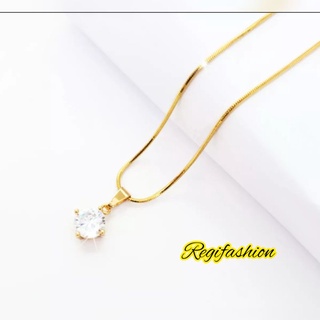 Kalung titanium liontin permata bulat gold fashion wanita terlaris anti karat tidak luntur