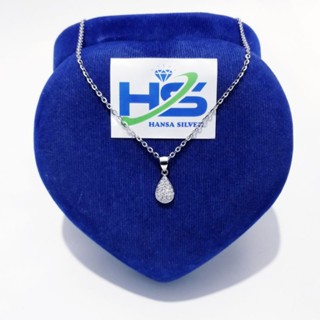 Kalung Perak Wanita Silver Asli 925 Lapis Emas Putih Italy kotak Liontin Bulat Permata