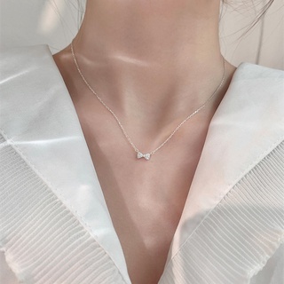 Kalung Liontin Pita Hias Kristal Berlian Imitasi Warna Silver Gaya Korea Untuk Wanita