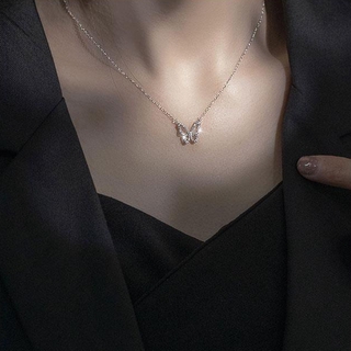 Kalung Rantai Liontin Kupu-Kupu Hias Kristal Warna Silver Untuk Wanita