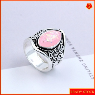 [Ready Stock]Big Diamond Pear-Shaped Moonstone Ring Exaggerated Punk Style