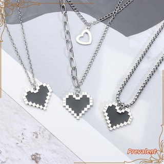Kalung Rantai Double Layer Desain Mosaik Hati Warna Hitam Gaya Punk Untuk Hadiah