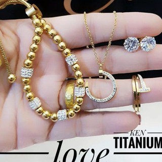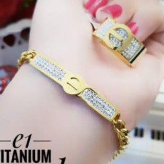 Titanium Set Perhiasan Gelang dan Cincin Wanita C720