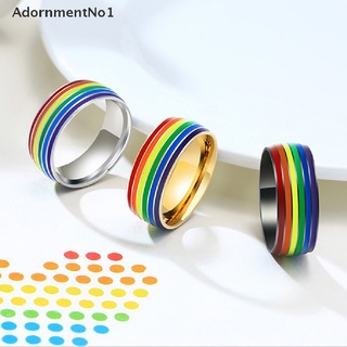 (AdornmentNo1) Cincin LGBT Bahan Stainless Steel Warna Pelangi