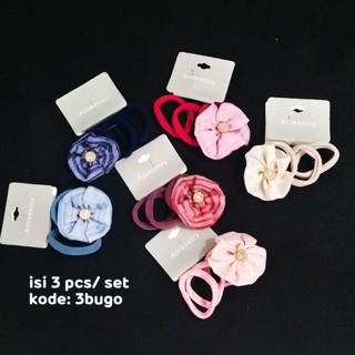 ikat rambut set 3 bunga permata gold 3bugo ikat rambut isi 3 donat bunga