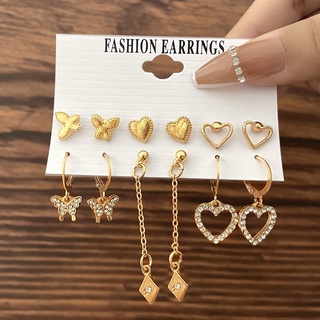 Set Anting Hoop Bentuk Kupu-Kupu Hati Lingkaran Geometris Warna Emas Gaya Vintage Untuk Wanita
