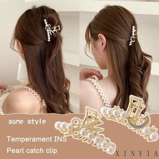 Jepit Rambut Wanita Bahan Metal Aksen Mutiara Dan Berlian Imitasi Untuk Musim Panas