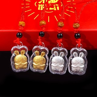 Kalung Choker Tali Adjustable Dengan Liontin Kelinci Bahan Foil Emas Untuk Unisex