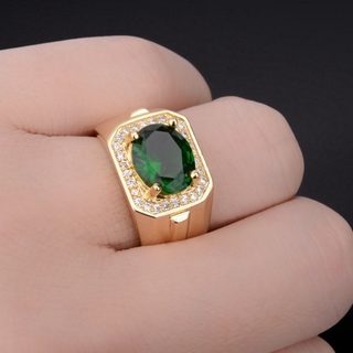 Cincin Batu Permata Kristal Rubi Zamrud Emas Bahan Stainless Steel Untuk Pria