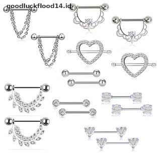 [OOID] 16Pcs/Set Bar Ring Stainless Steel Crystal Nipple Rings Body Piercing Jewelry ID