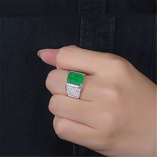 Cincin Kasual Emas Putih Zamrud Untuk Pria Fashion Perhiasan Aksesoris Kristal Hijau Silver Rings