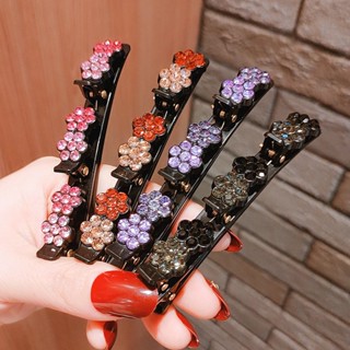 Jepit Rambut Bunga Kristal Akrilik Gaya Korea Baru Untuk Gadis Berlian Imitasi Manis Lucu Poni Jepit Samping Elastis Duckbill Clip
