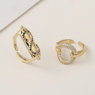 Eropa dan Amerika baru perhiasan berlebihan hip hop bertatahkan cincin geometris dan emas terbuka ci