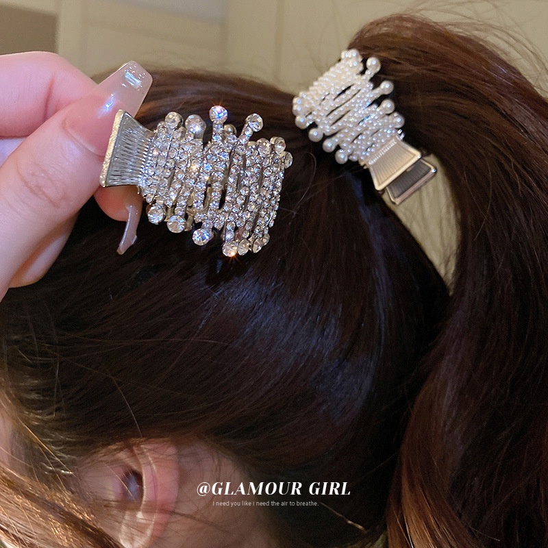 Detail Aksesoris Jepit Rambut Ekor Kuda Aksen Mutiara Kristal Untuk Wanita