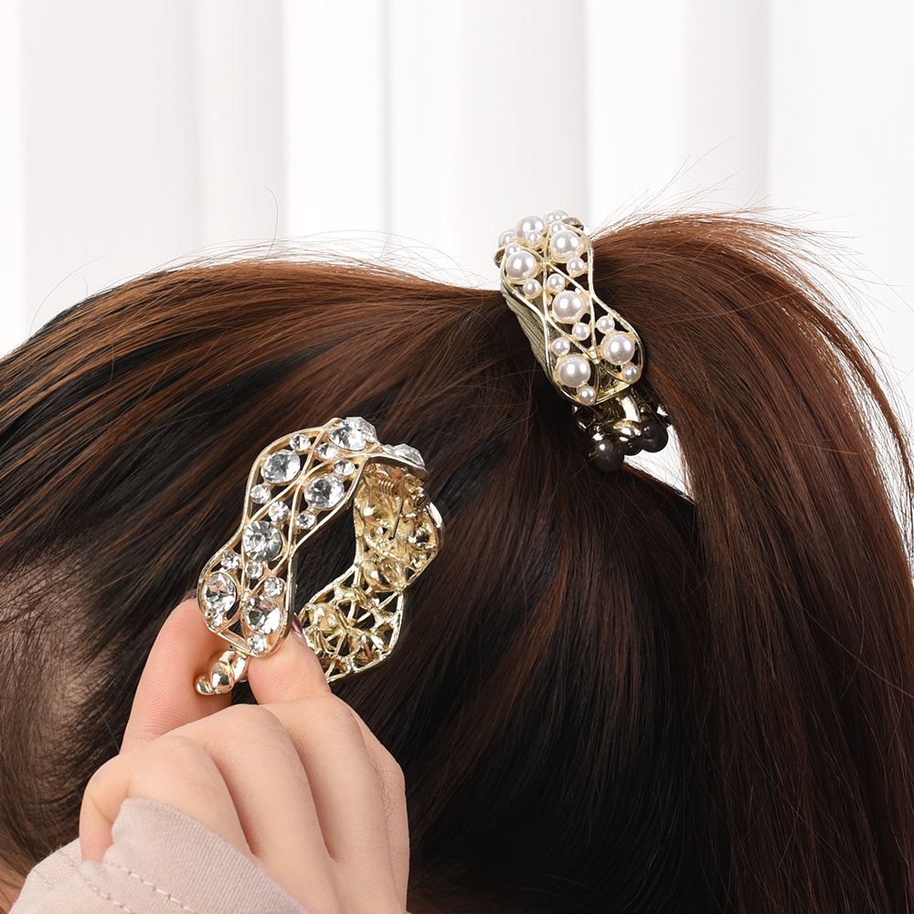 Jepit rambut kepala bola berlian imitasi mutiara Bahan paduan, tahan lama dan aman, tidak mudah berubah bentuk atau pecah Hiasan mutiara/berlian imitasi, modis dan elegan