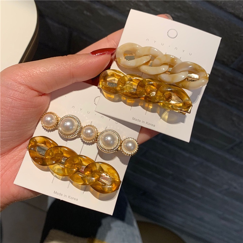 Detail Aksesoris Jepit Rambut Rantai Bahan Akrilik Metal Gaya Retro Korea Untuk Perempuan
