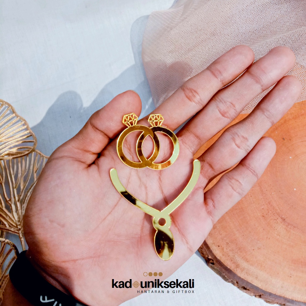 Simbolis Set Perhiasan Aksesoris Mahar - Bahan Akrilik Gold - Dibentuk dengan teknik laser cut jadi sangat presisi - Ukuran standart tidak terlalu kecil - Tersedia Simbolis 1. Set Perhiasan Kalung dan 2 cincin 2. Simbolis Kalung ( diameter 5cm ) 3. Simbolis 2 cincin ( diameter 3,5 cm ) 4. Simbolis 1 cincin ( Diameter 2,5 cm )