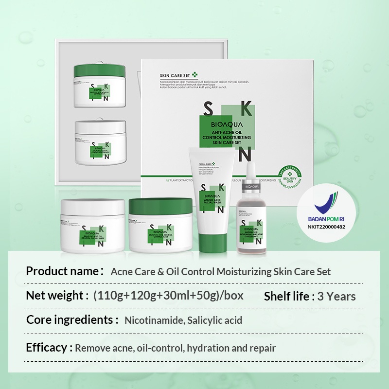 BIOAQUA Anti-Acne Oil Control Moisturiz ing Skin Care Set NET WT: (50g+110g+120g+30ml)/box BPOM NKIT220000482