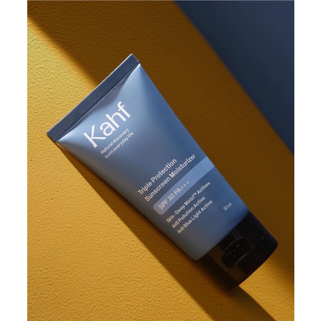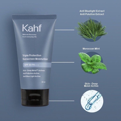 Kahf Triple Protection Sunscreen Moisturizer adalah pelembap wajah pria dengan tekstur yang ringan, mudah menyerap, serta tidak membuat kulit terasa lengket. Dilengkapi dengan Skin-Deep Moist™ Actives yang dapat memberikan kelembapan pada kulit serta kadar SPF 30 & PA +++ yang dapat memberikan perlindungan pada kulit dari paparan sinar matahari berlebih dan polusi. Diperkaya dengan ekstrak Japanese Mugwort mampu menjaga kulit dari radiasi sinar Blue Light yang dipancarkan dari perangkat digital.