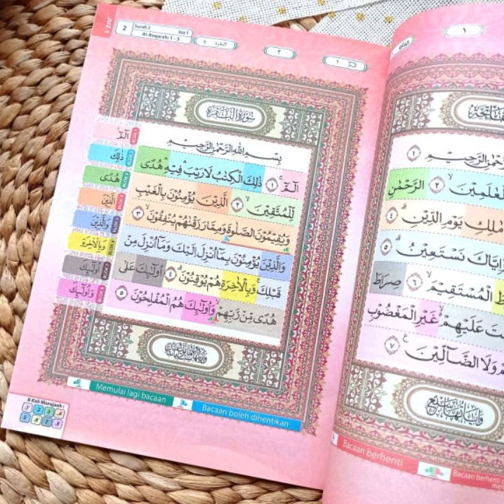 Al-Qur’an ini terdiri dari 8 blok warna yang memudahkan pembaca dalam menghafal dan mengingat ayat-ayat yang penting. Fitur waqaf ibtida bendera warna memungkinkan pembaca untuk mengetahui dengan jelas kapan harus berhenti membaca dan memulai kembali. Sementara itu, keyword awal ayat memudahkan pembaca untuk mengetahui tema dari ayat tersebut.