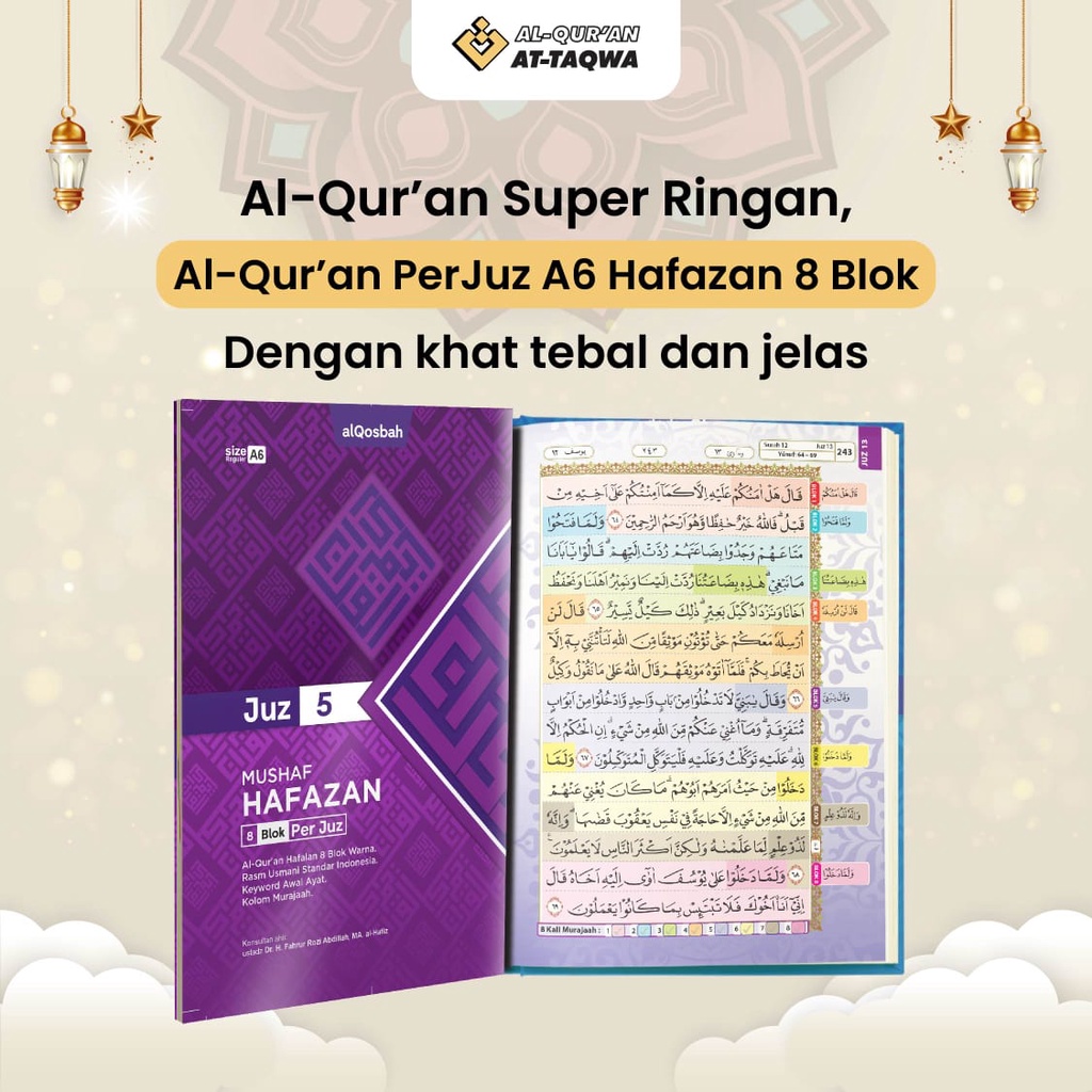 Detail Al-Qur'an PerJuz A6 Hafazan 8 Blok Super Minimalis & Ringan, Muat di saku! (BONUS BUKU DZIKIR)