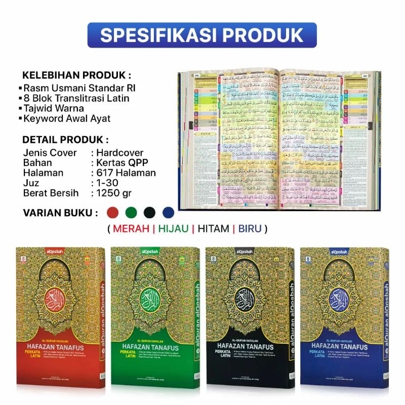 = Al-Quran Hafalan Per Kata HAFAZAN = Note : Al quran Ready Hafazan 8 Blok Perkata Latin A4 Penerbit : Al-Qasbah Jenis : Al-Quran Hafalan Ukuran : A4 (21x30cm) Model : Hard Cover Kertas : Qpp Full Color