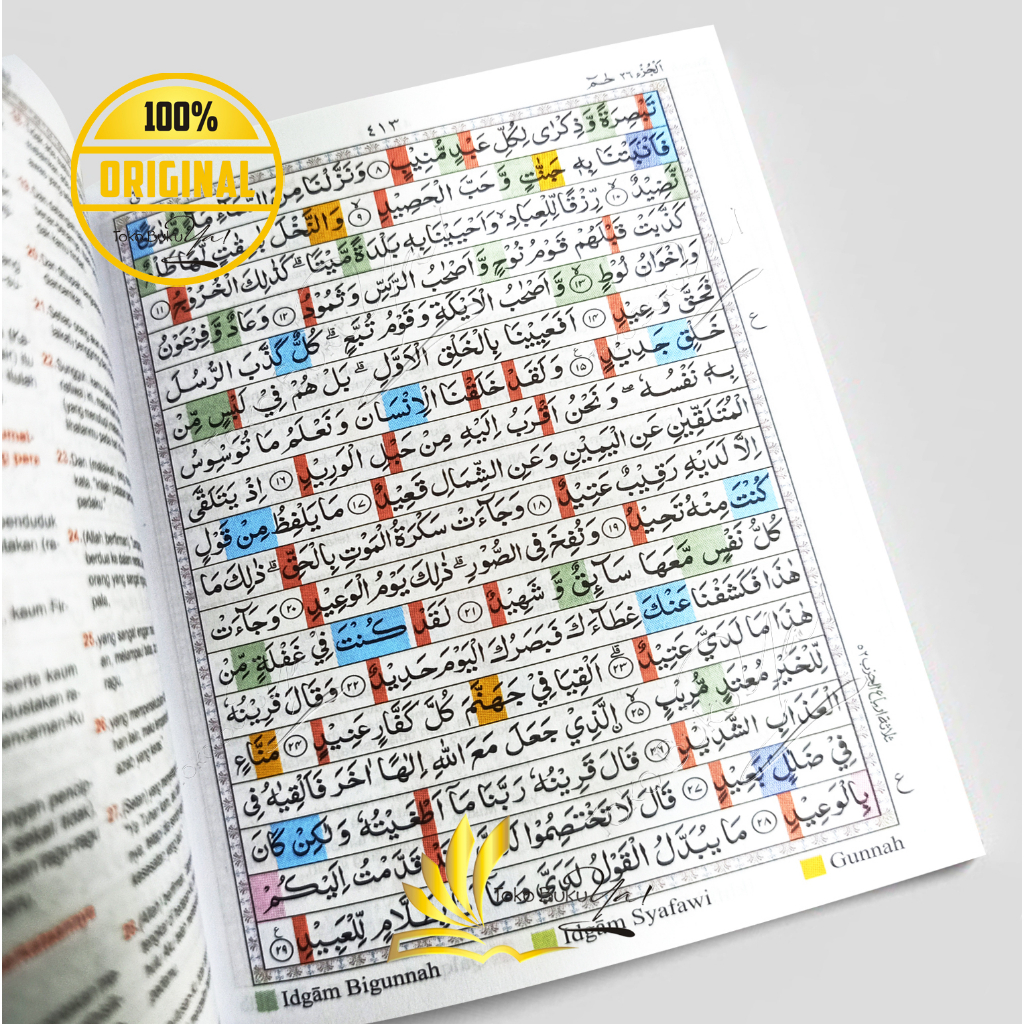 Ini adalah al Quran dengan tajwid blok warna tak harus membawa Al Quran lengkap, cukup membawa juz yang diperlukan, sangat cocok untuk muraja'ah para penghafal Al Quran dan tilawah harian, hasil cetakan menawan sehingga nyaman untuk dibaca.