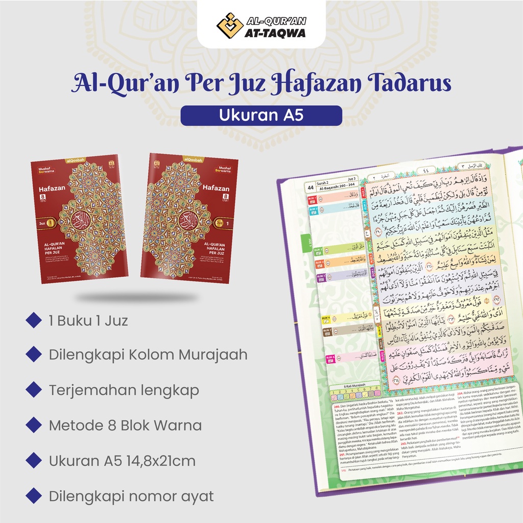 Detail Al Quran Per Juz Hafazan 8 Blok | Ukuran Sedang A5 | NON-PERKATA LATIN | BONUS BUKU DZIKIR