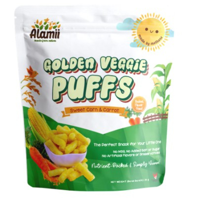 Alamii Puffs - Snack Bayi/Anak Sehat dan Lezat baru dari Alamii Food! Terbuat dari beras dan jagung pilihan, bahan baku premium dan natural sehingga menghasilkan puffs yang bertekstur lembut di mulut. Cocok untuk anak usia 1 tahun keatas.