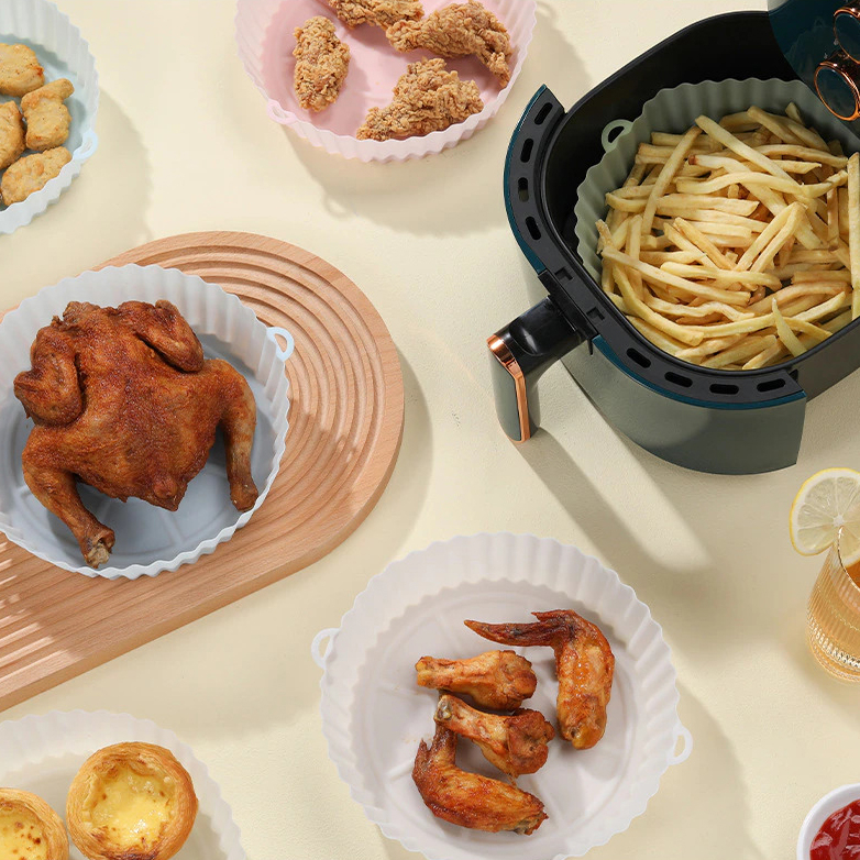 Memasak menggunakan air fryer sebaiknya menggunakan alas silikon ini. Alas silikon untuk air fryer ini berfungsi sebagai wadah agar air fryer lebih bersih tanpa ada sisa minyak atau makanan yang tumpah di dalamnya.