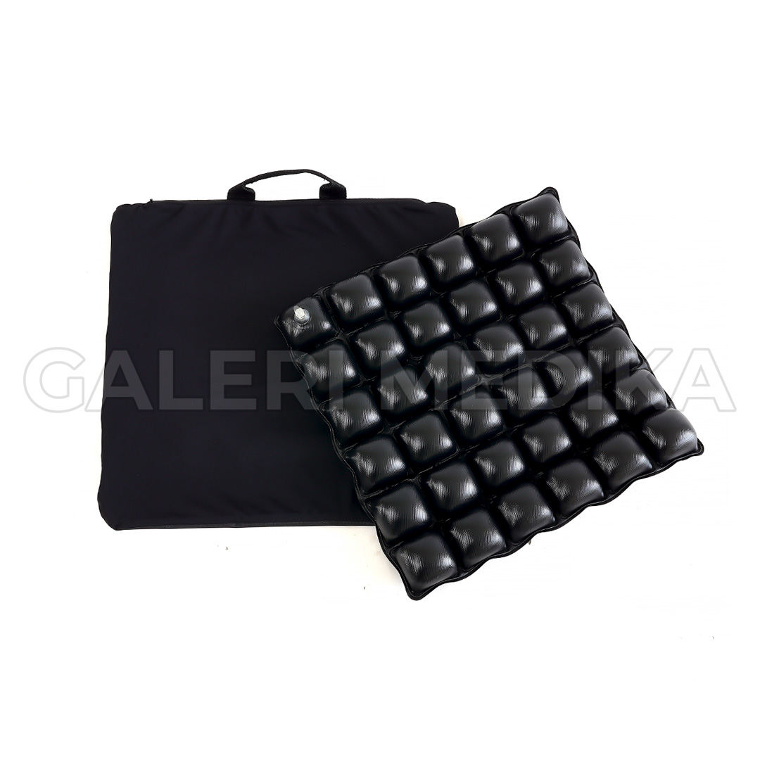Fitur Produk Pemakaian yang mudah Membantu mencegah tekanan ulcer, bedsore dan back pain Dengan bahan PVC tahan lama Mudah digunakan dimana saja Bisa digunakan sebagai bantalan kursi roda, kursi kayu, dll Dimensi bantalan 430x430 mm Maks. Beban hingga 100kg