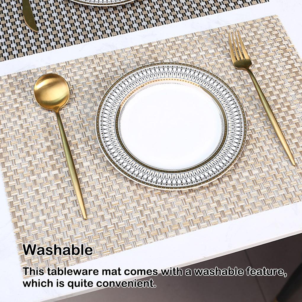 Daya tahan: Alas peralatan makan ini terbuat dari bahan PVC premium, yang memungkinkan tahan lama.