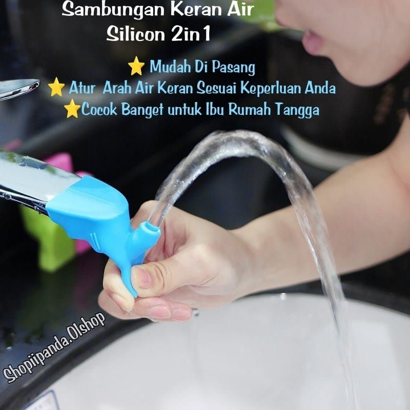 Sambungan untuk kran air wastafel/kamar mandi yang terbuat dari bahan silikon yang elastis dan praktis yang berfungsi untuk memperpanjang pancuran air sehingga mudah bagi si kecil untuk mencuci tangannya sendiri. Selain itu sambungan ini juga dapat membantu kita berkumur pada saat akan menyikat gigi karena memiliki lubang saluran pada bagian atasnya yang dapat memancurkan air kran ke arah atas apabila kita menekan lubang saluran di bagian bawahnya. Desainnya yang unik,kecil dan ringan bisa dibawa kemana saja.