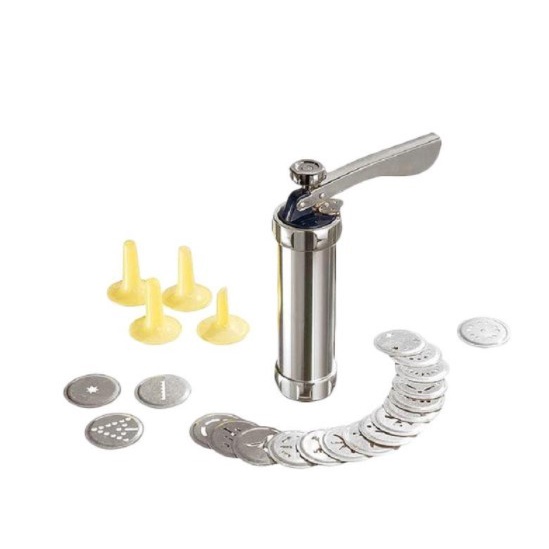 - Cetakan biskuit yang mudah digunakan. - Dilengkapi manual book yang disertai resep adonan. - Dilengkapi dengan 20 cetakan berbeda untuk membuat variasi bentuk biskuit. - Cetakan kue dan biskuit ini terbuat dari stainless steel aman dan awet - Dapat dibongkar pasang sehingga mudah dibersihkan. - Cocok untuk melengkapi dapur Anda atau sebagai hadiah untuk sahabat.