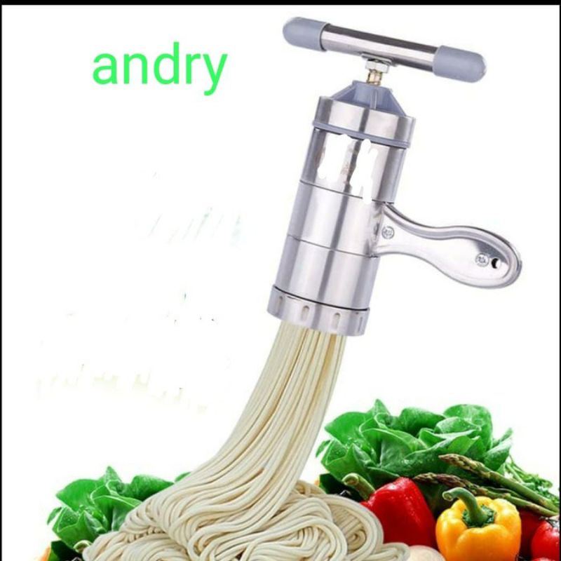 CETAKAN MIE 555 Alat pencetak mie ini sistem tekanan manual stainless steel dan anti karat. Taruh mie yang akan dibentuk kedalam mesin mie dan putar pegangan untuk menekan mie dan mie dapat dibentuk menjadi bentuk rata atau bulat. Alat ini sangat berguna didalam dapur.