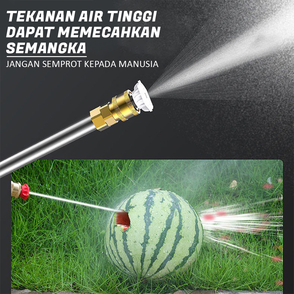 Kemasan produk: 1 koper 1 semprotan air pencuci mobil bertekanan tinggi 1 selang 1 saringan air 1 tiang panjang 1 nozel 1/2 baterai 1 adaptor daya 1 toples sterofoam
