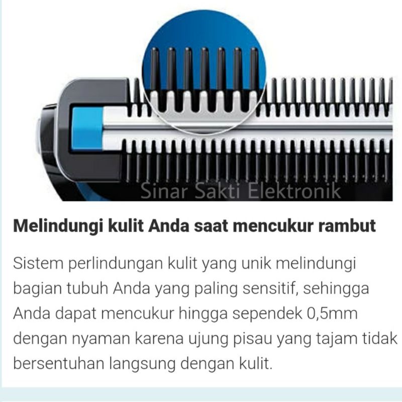 PHILIPS Body Shaver Series 1000 diproduksi khusus untuk tubuh. Berbeda dengan alat cukur lainnya yang manual ataupun elektrik yanng dibuat khusus untuk wajah. Alat ini dilengkapi dengan sistem pelindung kulit yang unik dan di desain dengan sangat ringkas, cocok untuk digunakan di area dengan permukaan kecil dan sensitif. Produk ini cocok pula dibawa ketika sedang bepergian, praktis dan menjaga Anda tetap bersih dari bulu yang tumbuh. Memiliki kabel shower, berfungsi untuk menggantungkannya dimana Anda inginkan, untuk memudahkan akses saat ingin menggunakannya. Easy to Use Didesain khusus untuk melindungi kulit Anda, bahkan ketika Anda memangkas hingga 0.5 mm pendeknya. Sistem perlindungan kulitnya yang akan menjaga bagian tubuh Anda yang paling sensitif. Bercukur dengan nyaman karena ujung pisau yang tajam tidak bersentuhan langsung dengan kulit. Desain unik dengan sisir dua arah dan sisir 3mm, mampu menjangkau rambut walau tumbuh ke arah berlawanan. 100% tahan air dan showerproof, sehingga cukup Anda bila setelah pemakaian. Untuk hasil terbaik, gunakan pada rambut kering sebelum mandi. Dengan handle karet yang dirancang untuk pengoperasian optimal bahkan saat tangan Anda basah.