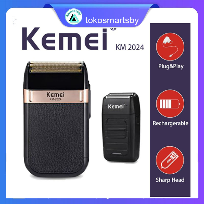 Spesifikasi : Merek: Kemei Cocok untuk : Laki-laki Perempuan. anak Use : Wajah, jenggot, kumis, tukang cukur. Tegangan: 100-240V Waktu pengisian daya : 8 jam Waktu kerja: 45 menit Daya: 3W Model: KM-2024 Warna: Hitam Kulit Bahan: ABS + Logam Ukuran : 9,5cm x 5,5cm Berat : 131gr Model:KM-1102 Warna:Hitam Kulit Bahan:ABS+Logam Ukuran:12cmx6.5cm Berat:150gr