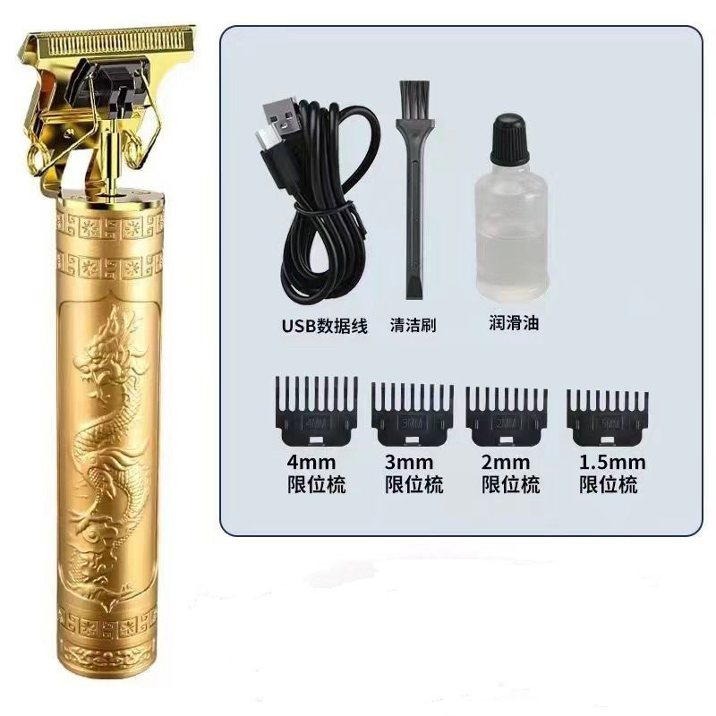 Paket 1 x Mesin Trimmer 1 x Minyak 4 x sisir batas (1.5mm 2mm 3mm 4mm) 1 x charger 1 x Sikat pembersih