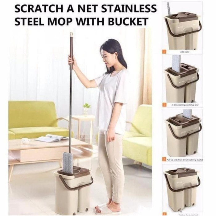 *Mempunyai bucket dengan 2sekat terpisah (DRY&WASH) *Dapat membersihkan secara menyeluruh termasuk area yang sulit dijangkau. *Kain pel berbahan serat mikro yang dapat menyerap sempurna. *Bisa digunakan untuk membersihkan noda kering dan basah *Terdapat lubang pembuangan air