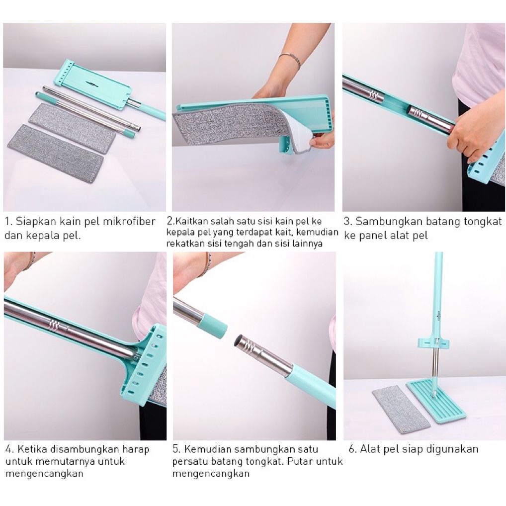 Wujudkan keinginanmu dengan Alat Pel Lantai yang punya banyak keunggulan : 1. Mengepel menjadi lebih praktis 2. Kepala pel kain microfiber yang dapat mengeringkan lantai dengan mudah 3. Bisa digunakan untuk mengepel dan juga untuk menyapu 4. Cukup dengan menarik , tidak perlu repot repot untuk memeras kepala pel 5. Kepala pel bisa diputar yang dapat menjangkau hingga ke sela-sela kecil 6. Kualitas yang terjamin awet dan tahan lama.