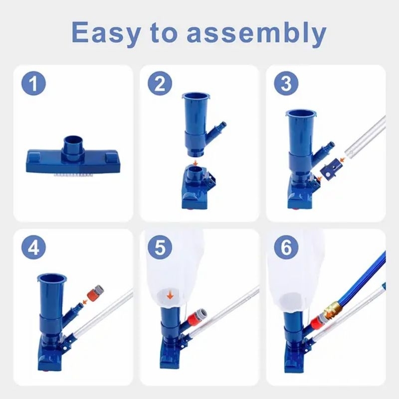 Tidak ada kebutuhan tenaga listrik Tekanan air dari selang menimbulkan efek isap, yang menarik daun dan kotoran ke dalam kantong penampung. Penyedot debu jet kolam tidak memerlukan daya, aman digunakan di bawah air dan ekonomis. Cukup sambungkan ke selang taman Anda, sangat mudah digunakan! Mudah dirakit Penyedot debu jet kolam mudah dirakit. Tidak perlu proses yang rumit, Anda dapat merakit seluruh penyedot debu jet kolam dengan cepat. Tahan lama Penyedot debu jet kolam terbuat dari bahan plastik premium dan berkualitas tinggi, yang menjamin daya tahan maksimum. Portabel Penyedot debu jet kolam renang kompak dan mudah dibawa. Desainnya yang sederhana menghadirkan banyak kenyamanan bagi hidup Anda. Lingkup aplikasi Penyedot debu jet kolam cocok untuk membersihkan kolam renang, spa, kolam dan air mancur, dll. Penyedot debu jet kolam cocok untuk selang taman standar.