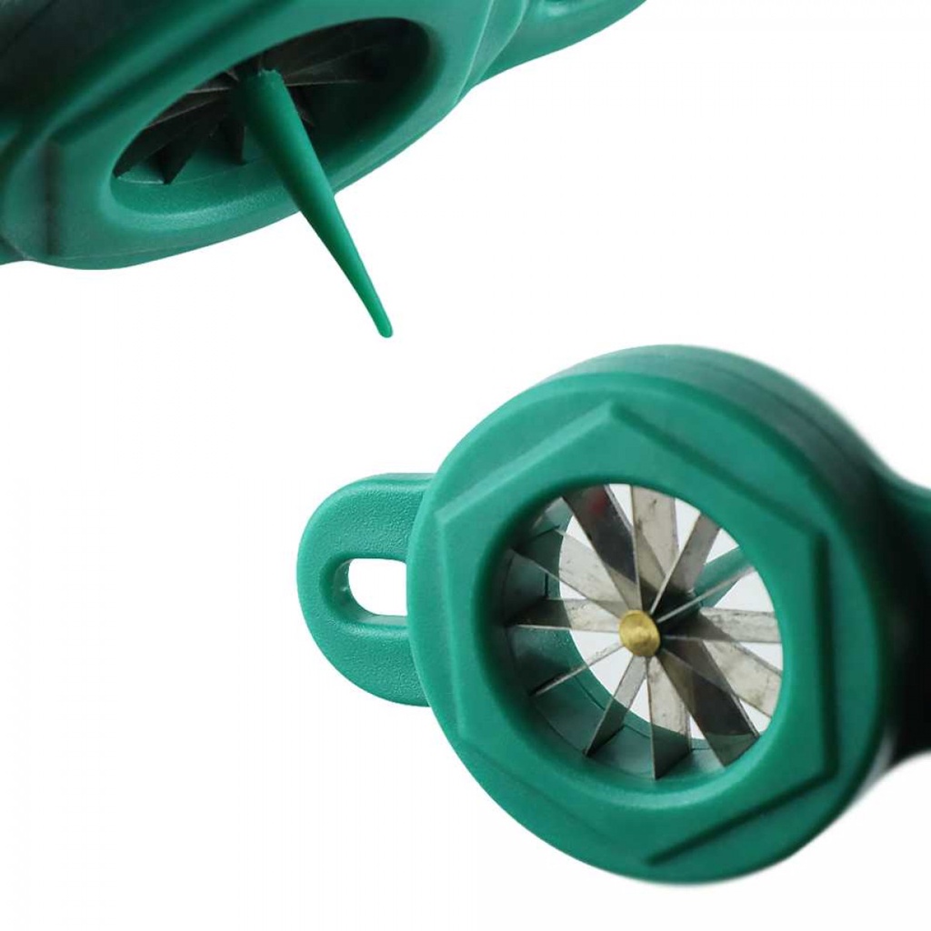 Fitur 12 Mata Pisau Tajam Meskipun terlihat sederhana, alat pemotong daun bawang serbaguna ini dilengkapi dengan 12 mata pisau stainless steel di bagian tengahnya. Dengan 12 mata pisau ini, hasil potongan bisa menjadi lebih banyak dan merata.