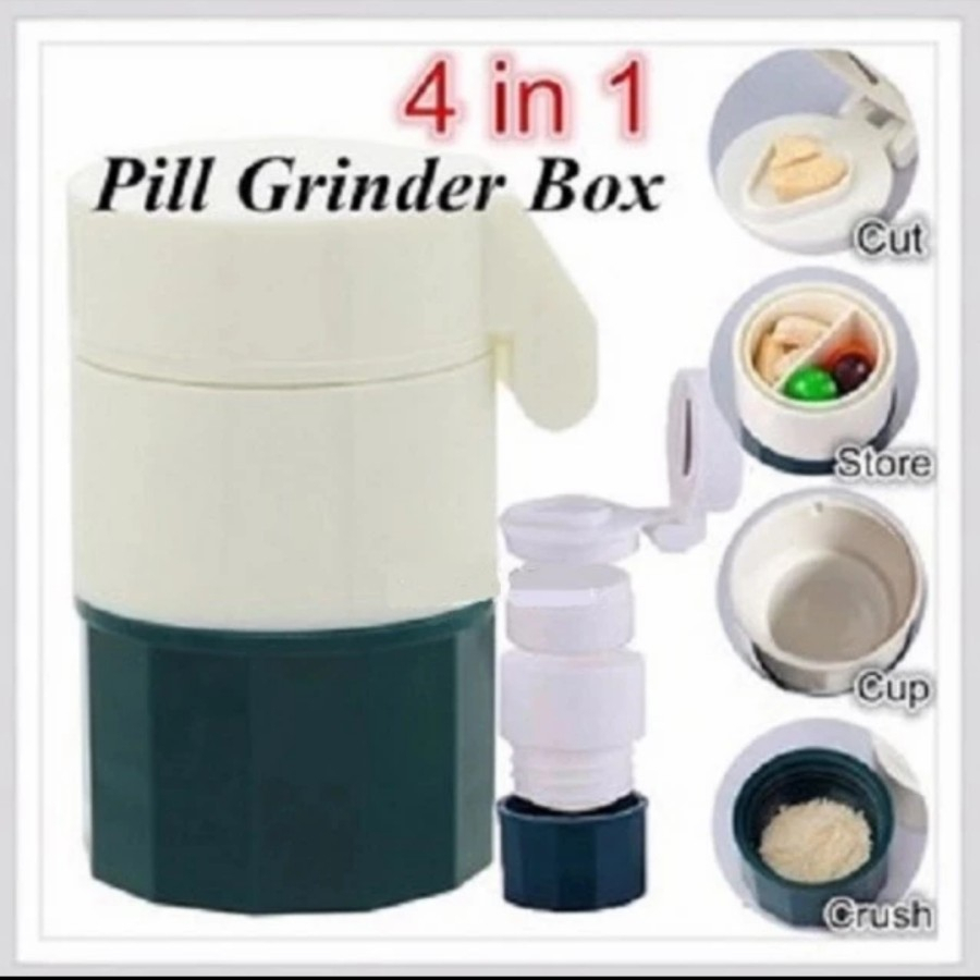 kotak obat 4 in1 lengkap dengan pemotong, penghalus, penyimpan ,dan gelas takaran air